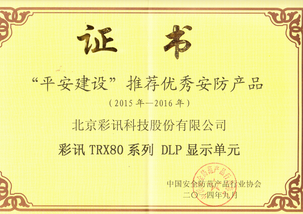 平安建設推薦優秀安防產品證書